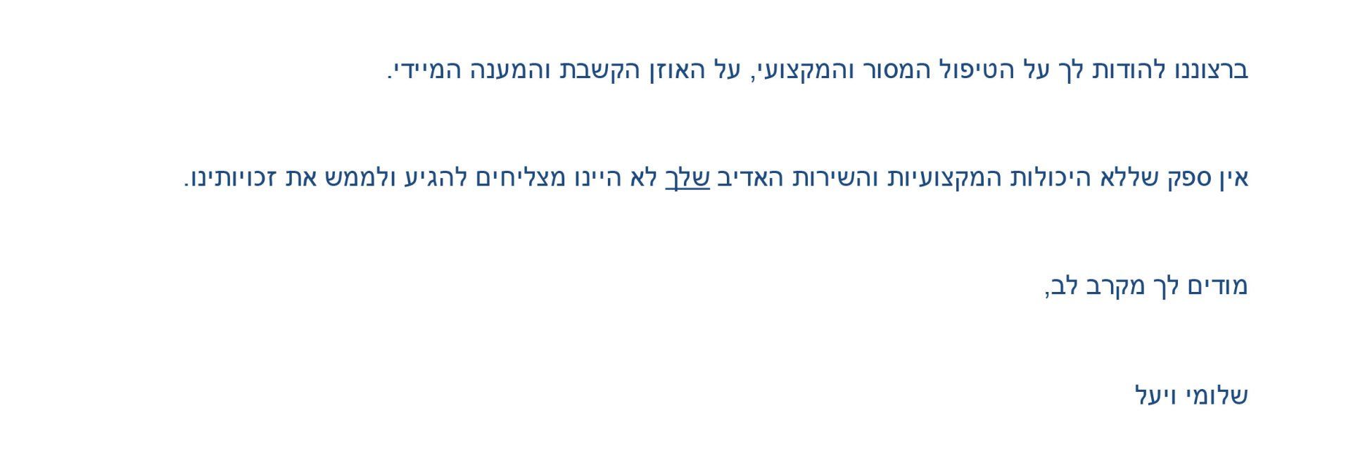 תודה על פנייתך, ניצור אתך קשר בהקדם.
